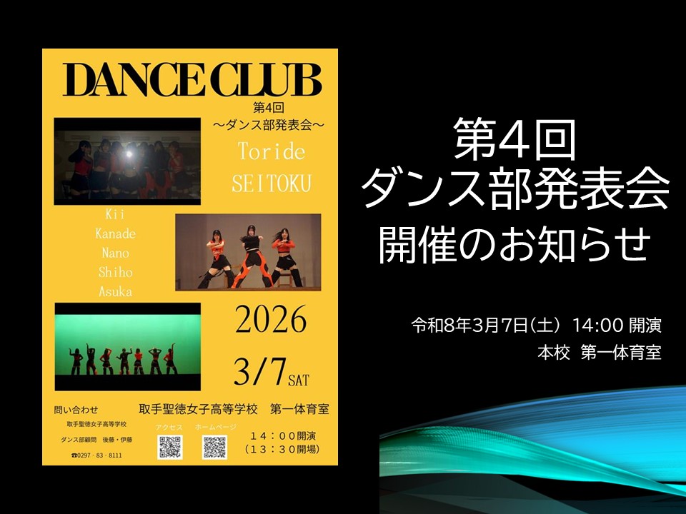 [ 第4回 ダンス部発表会 ]開催のお知らせ ~ 令和8年3月7日(土)14:00 開演 ~