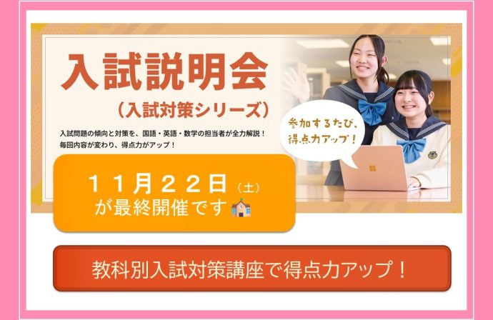 11月22日(土)最終開催🏫教科別入試対策講座で得点力アップ📚入試説明会(入試対策シリーズ)のお知らせ