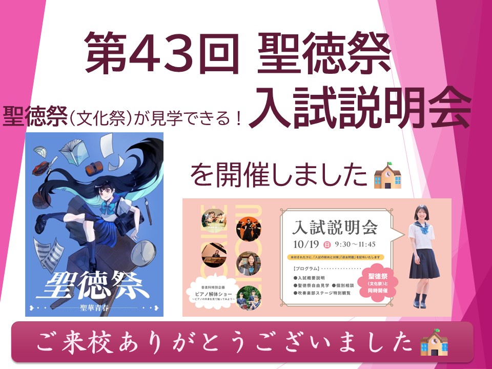 ご来校ありがとうございました!🏫[ 第43回 聖徳祭 ][ 聖徳祭(文化祭)が見学できる入試説明会 ]を開催しました!