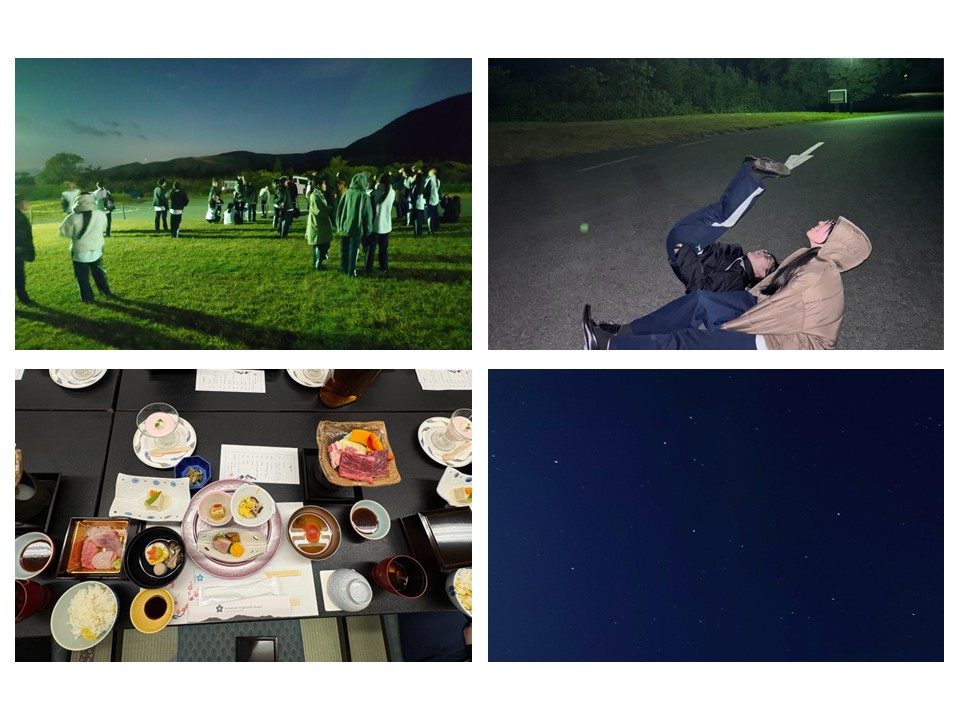 夕食後、希望する生徒たちは「星空観測会」へ⭐瀬の本高原の澄んだ空に広がる星々を眺め、感動のひと時を過ごしたようです。