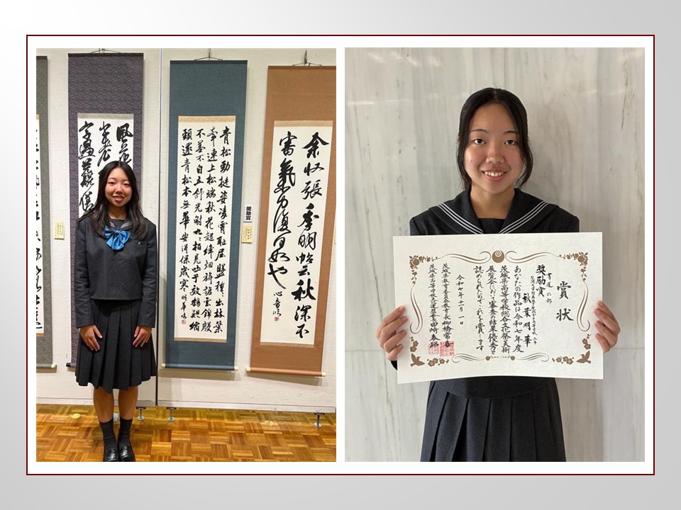 「令和7年度茨城県高等学校総合文化祭書道部門」において、本校 書道部の秋葉明華さん(2年)が奨励賞を受賞し、菅野心音さんが入選しました。