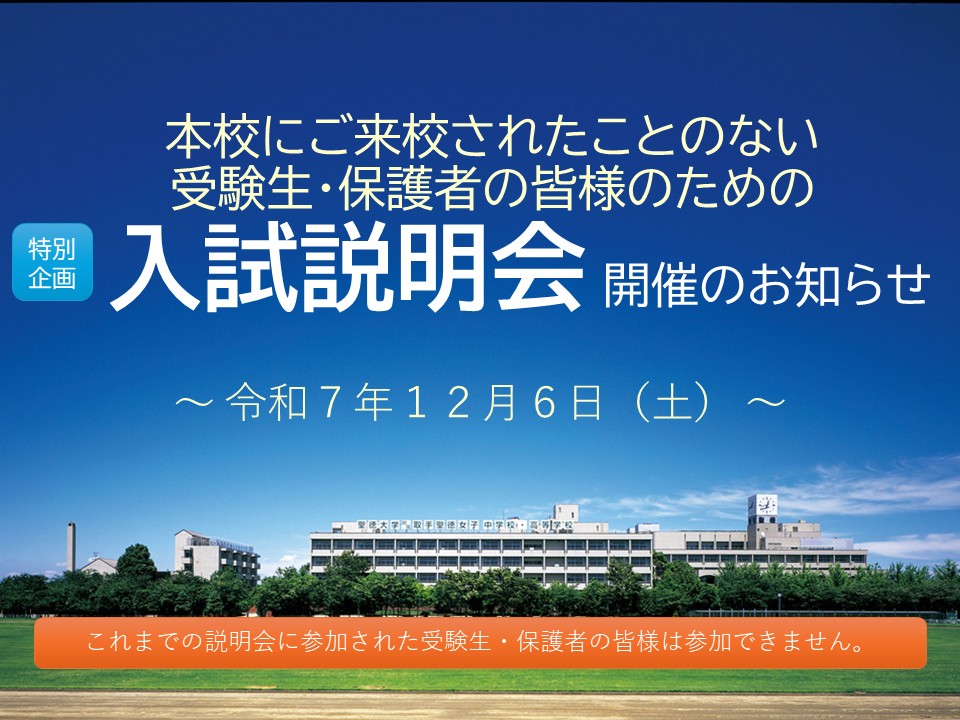 1月の入試本番に向けて取手聖徳女子高をもっと詳しく知っていただき、安心して受験を迎えられるよう、特別に企画しました。ぜひ、ご参加ください。