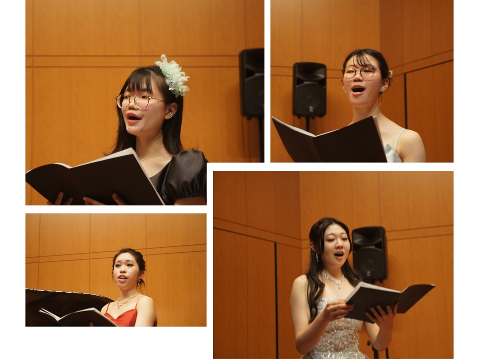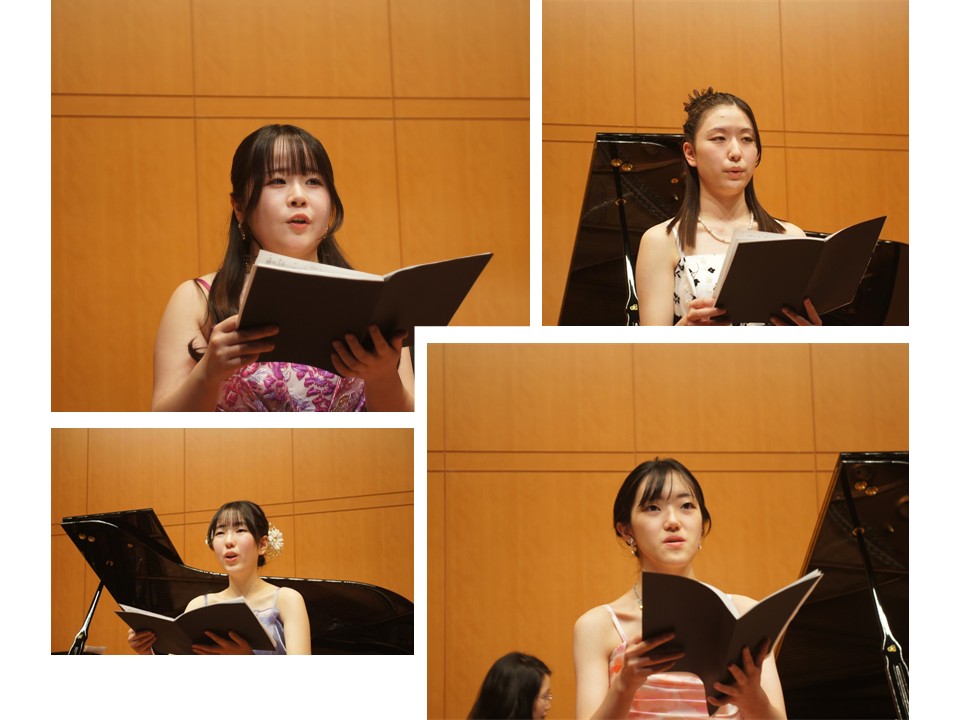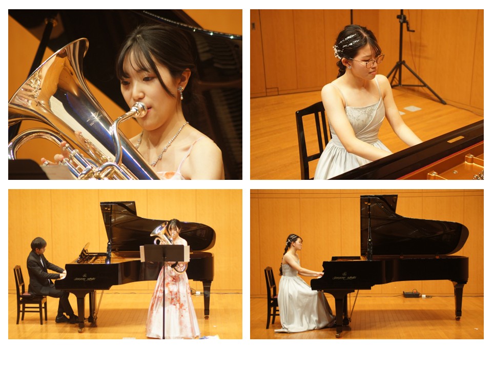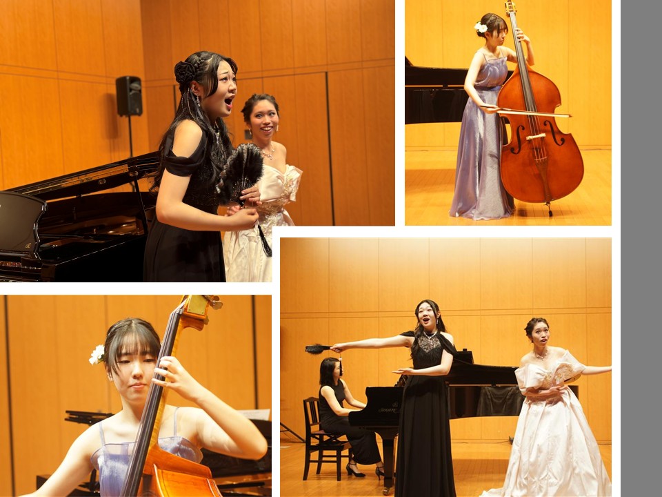 各々の専攻するピアノ・声楽・電子オルガン・コントラバス・ユーフォニアムのソロ演奏に加えて、アンサンブルや重唱・合唱等、多彩なプログラム展開の演奏会となりました。「プログラムノート」も生徒たち自身の手によるもので、音楽科の授業を通して育んだ感性を感じるものとなりました。