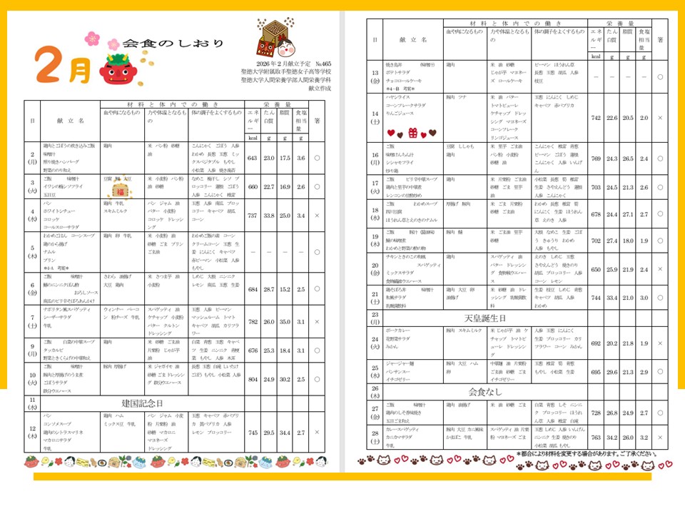 ✤ 献立はpdf.でご覧になれます。⇒ 会食のしおり 2026年2月