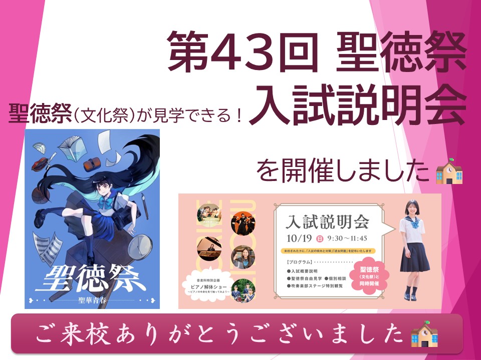 ご来校ありがとうございました!🏫[ 第43回 聖徳祭 ][ 聖徳祭(文化祭)が見学できる入試説明会 ]を開催しました!