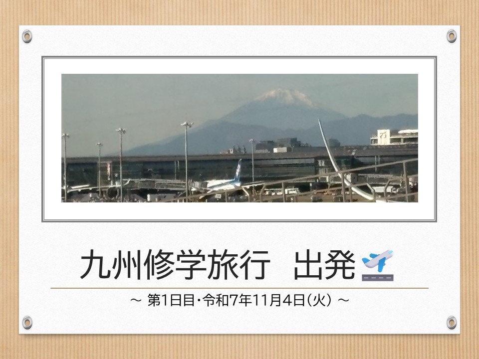 令和7年11月4日(火)より、5年生(高校2年生)が九州修学旅行に出かけました。 第1日目は、羽田空港より空路 長崎空港へ。天候に恵まれ、富士山を眼下に望むフライトとなりました。 長崎で...