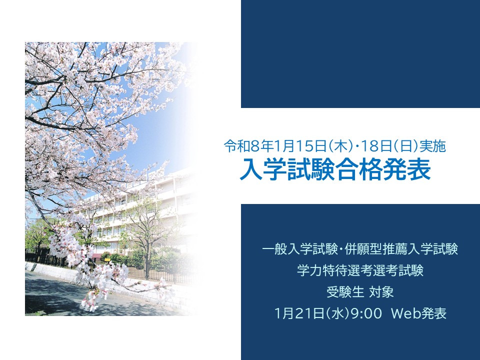 令和8年1月15日(木)及び18日(日)に実施いたしました[ 2026年度(令和8年度)一般入学試験・併願推薦型入学試験・学力特待選考試験 ]の合格発表は、こちらからご確認くださ...