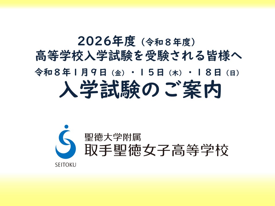 2026年度(令和8年度)高等学校入学試験を受験される皆様へのご案内です。受験前にご確認ください。 ✤ pdf.はこちら ⇒ 入学試験のご案内 1 入学試験会場 聖徳大学附属取手聖徳...