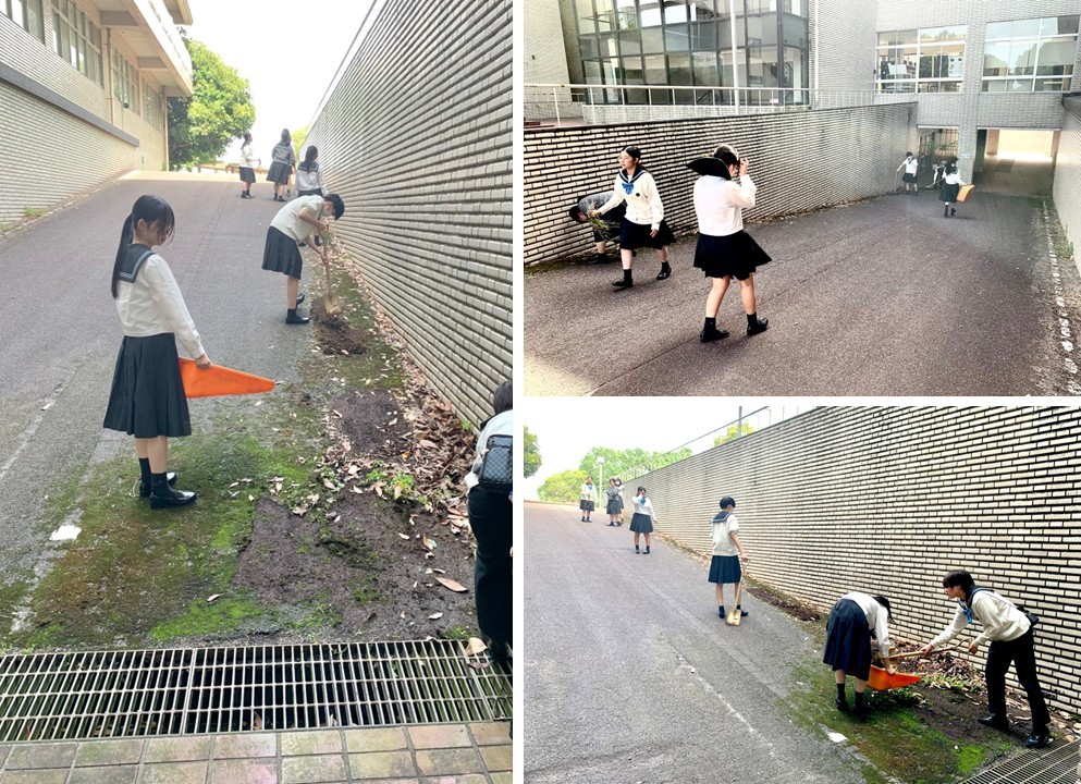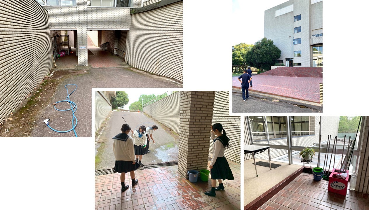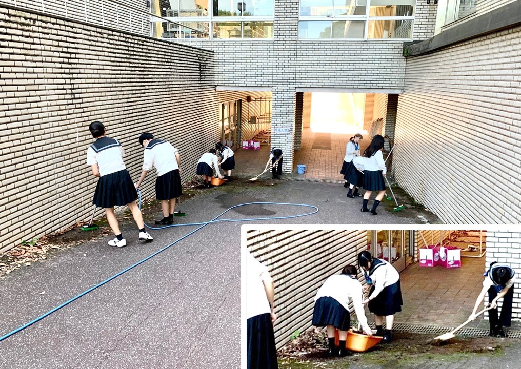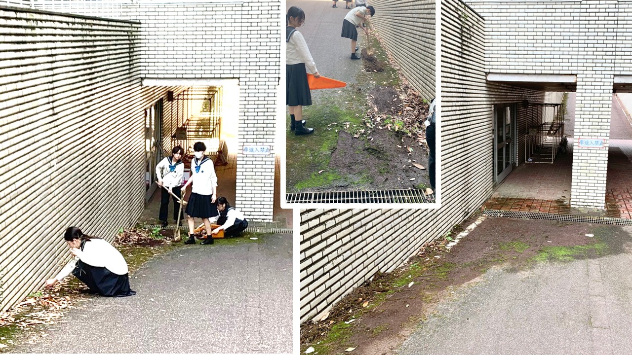 今週は、エリア外の清掃として、校舎をくぐる坂道の通路に