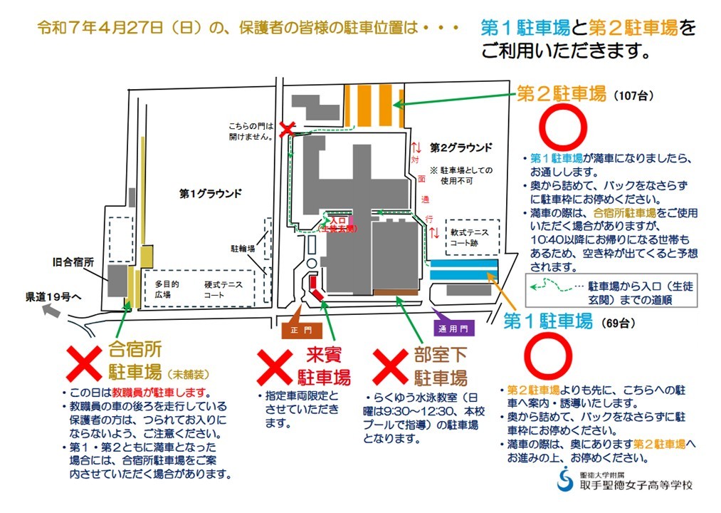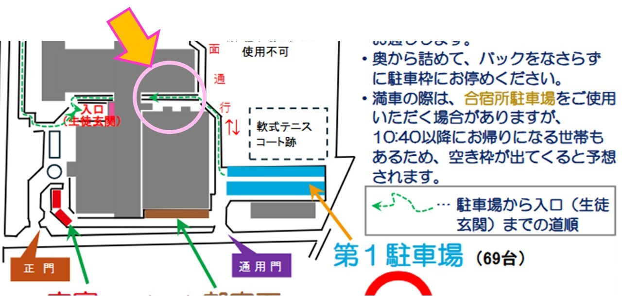 この第1駐車場から、「入口(生徒玄関)」へ向かう際に通る