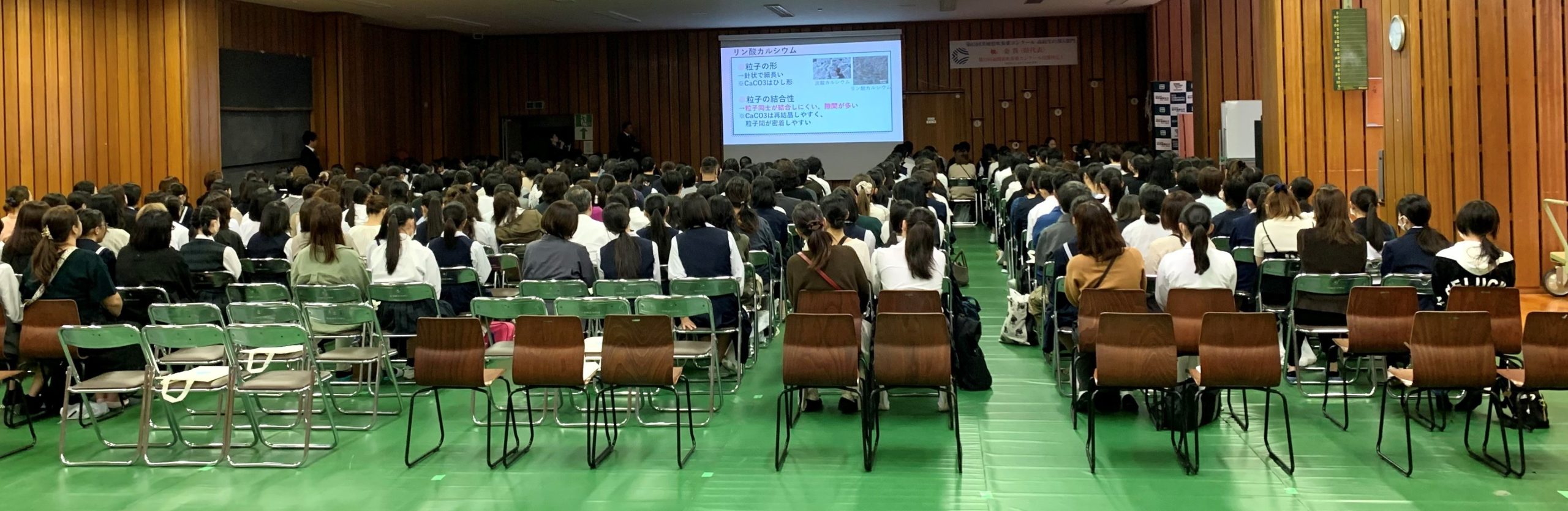 ( 2025/10/19 10:13 今年の入試説明会〈聖徳祭同時開催〉普通科会場の様子。卒研プレゼン「チョークの材料にはホタテが適しているのか」の視聴。)