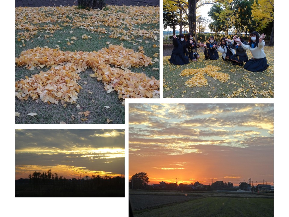 先日、所用があって1時間程早く退勤しようと職員玄関を出たところ、「先生~~!!」と呼ぶ声が……。ふと見ると、生徒たちが銀杏の落ち葉と戯れていました。写真を撮って「冷え込んできたから、風邪ひかないようにねっ。テストも近いんだからねぇ。」と声をかけたら、「は~~い、さようなら~~👋」盛大に見送ってくれました。かわいらしい生徒たちです。