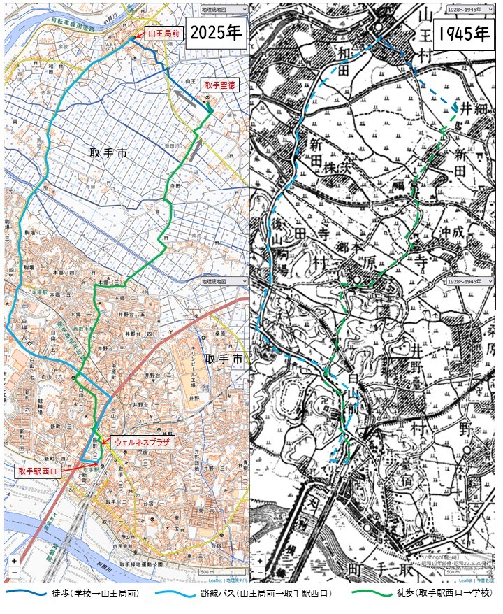 取手駅から学校までやむをえず歩いて向かう場合は、