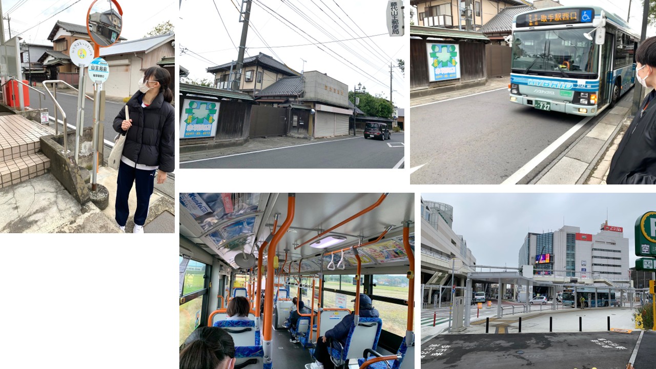 路線バスでの移動。駅からの復路はALL徒歩です。