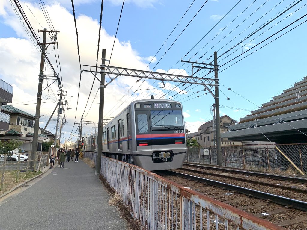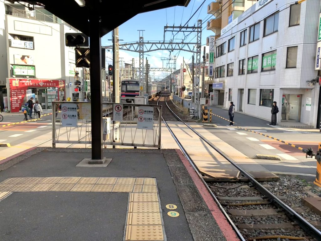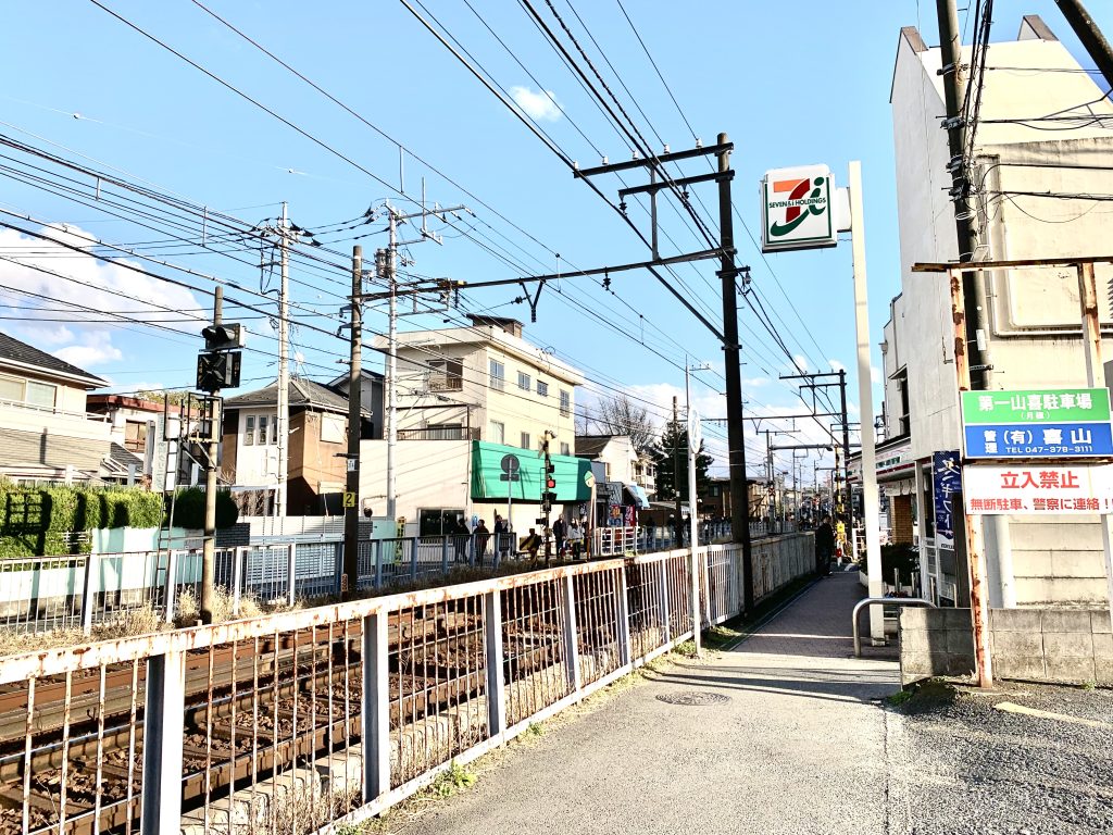 お店と線路の間、道路ではなくて、こちらお店の敷地なのに…