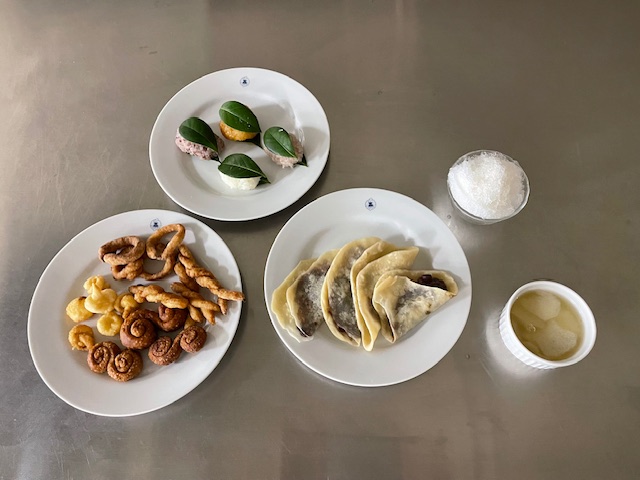 午前中で完成の予定でしたが、品数が多かったことに加え予想以上に手間がかかり、6時間目にようやく試食会となりました。