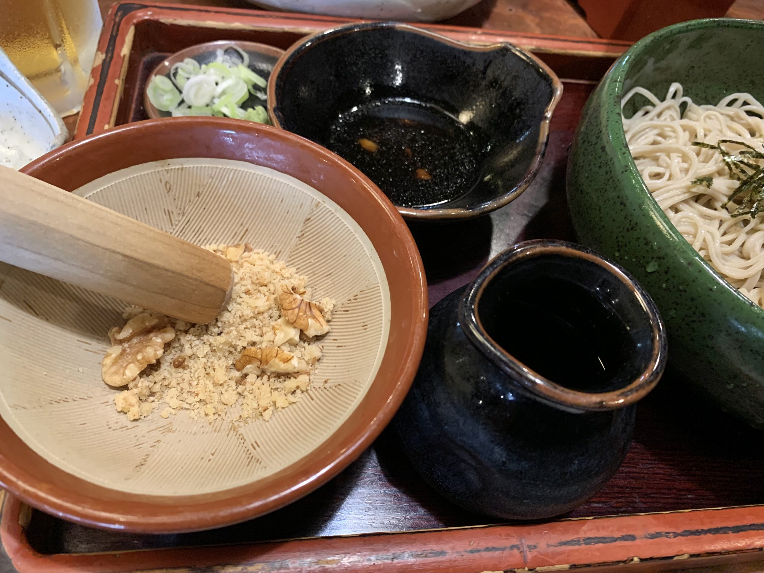 お品書きにあるお店ではくるみだれのお蕎麦を頼みますが、